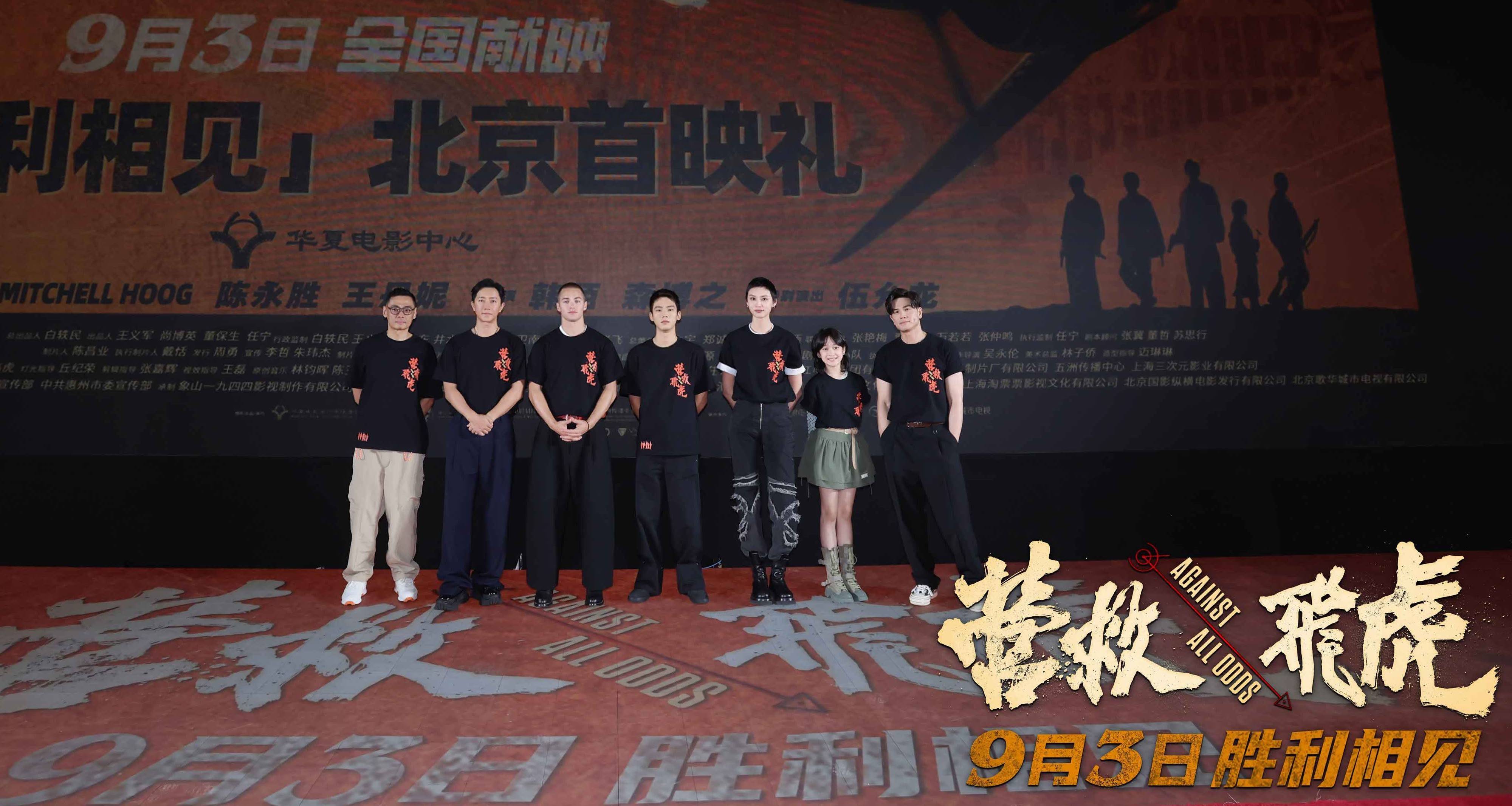 8月31日,电影《解救飞虎》举行“告捷再见”北京举行首映礼。影片编剧、导演刘浩良,领衔主演韩庚、米切尔·霍格、陈永胜、王丹妮,主演韩陌,终点献技伍允龙特集体亮相,与不雅众进行映后通常,现场反响热烈,好多不雅众映后普天同庆,说这是一部提气更解气的四肢片。该片将于9月3日寰宇公映。